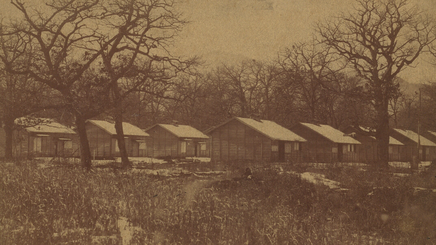 ⑥山田勝伴『開拓使最初の屯田兵』掲載の「出来上がりし兵屋」(出典:北海道屯田倶部)