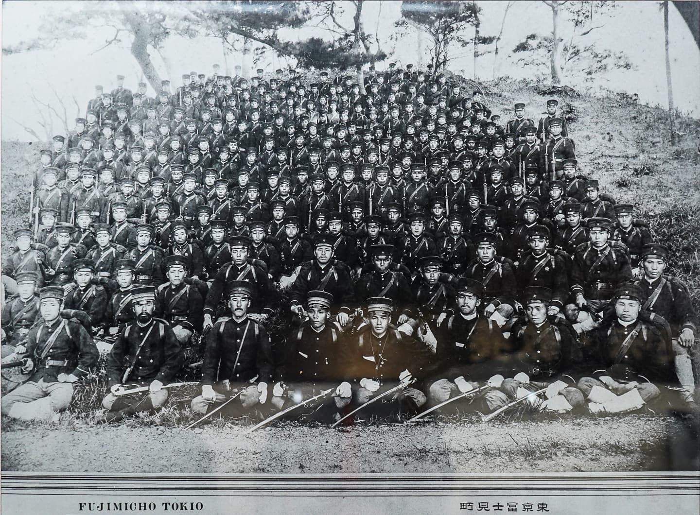 ⑤明治28年4月、日露戦争に赴く臨時第七師団屯田兵第三大隊中隊、東京で撮影(蔵:旭川兵村記念館)