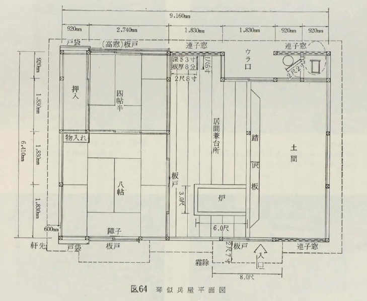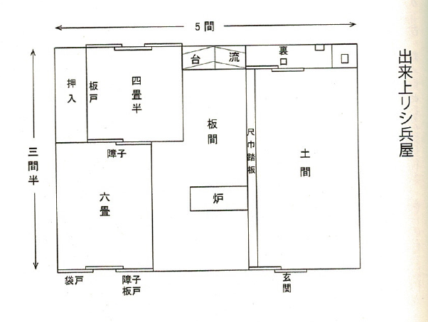 ④琴似屯田兵屋旧佐藤家住宅平面図(出典:北海道文化財シリーズ 第10集 (屯田兵村)1968)